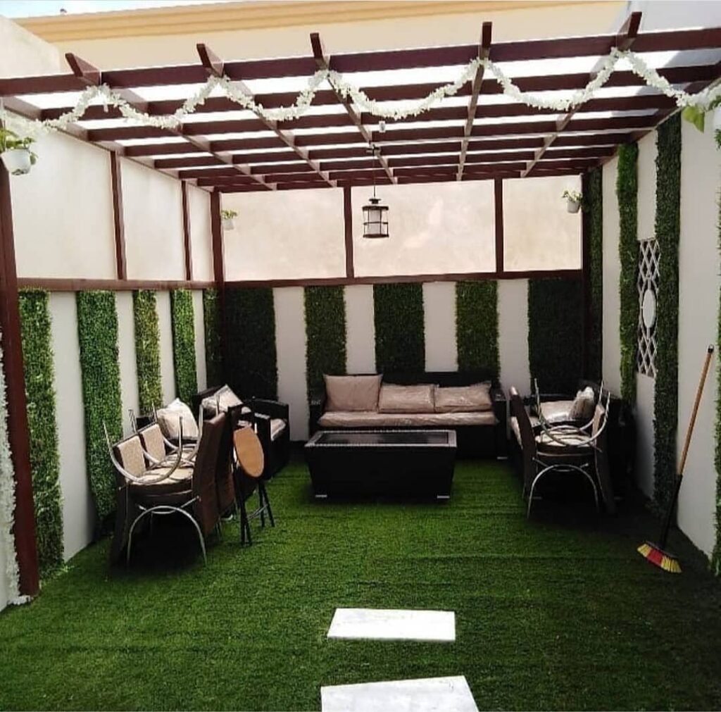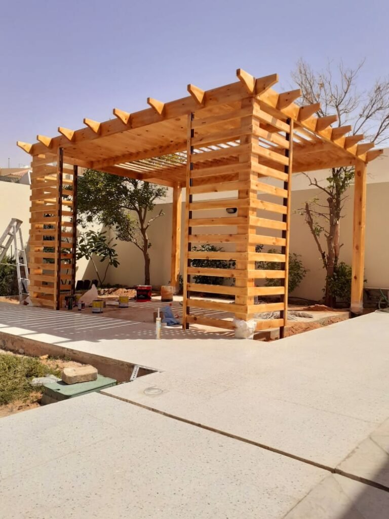 هياكل مصممة بأناقة توفر مناطق جلوس مريحة في الهواء الطلق، تتوفر بأشكال ومواد متنوعة لتلبية الأذواق المختلفة.